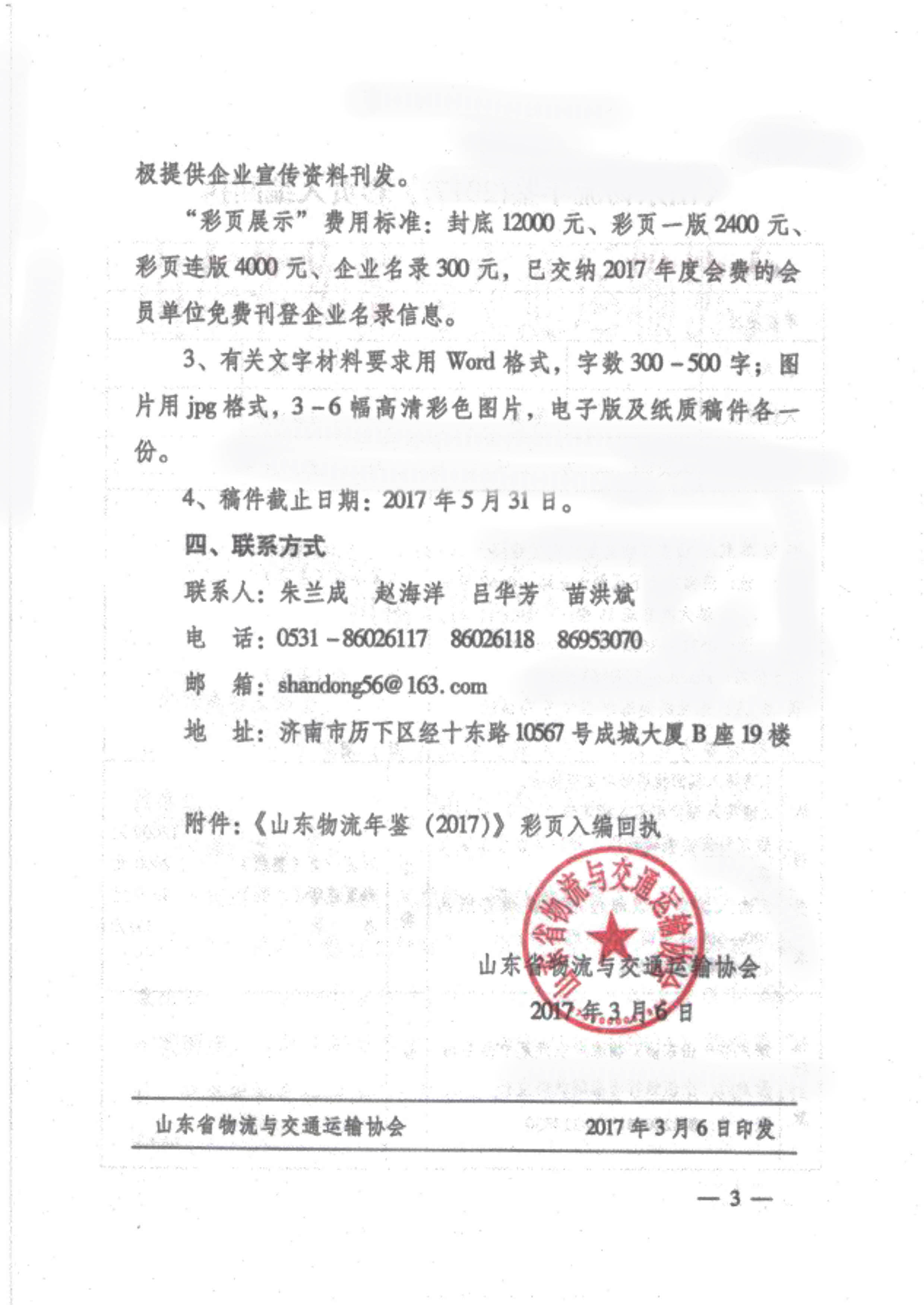 关于协助做好《山东物流年鉴(2017)》组稿工作的通知