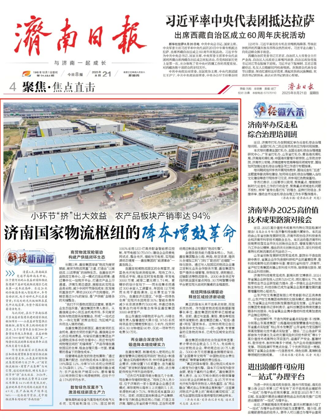 作为首批国家示范物流园区和济南商贸服务型国家物流枢纽的运营主体,山东盖世国际物流集团深耕行业27年,以“国家物流枢纽+商贸产业集群”为双引擎,通过创新路径,硬生生在小环节中“挤”出大效益。2024年,当全国社会物流总费用占GDP比率降至14.1%的历史低点时,盖世的库存平均周转次数提升至4.9次,农产品板块产销率达94%……这些数字背后,是中国物流降本增效的“济南经验”。