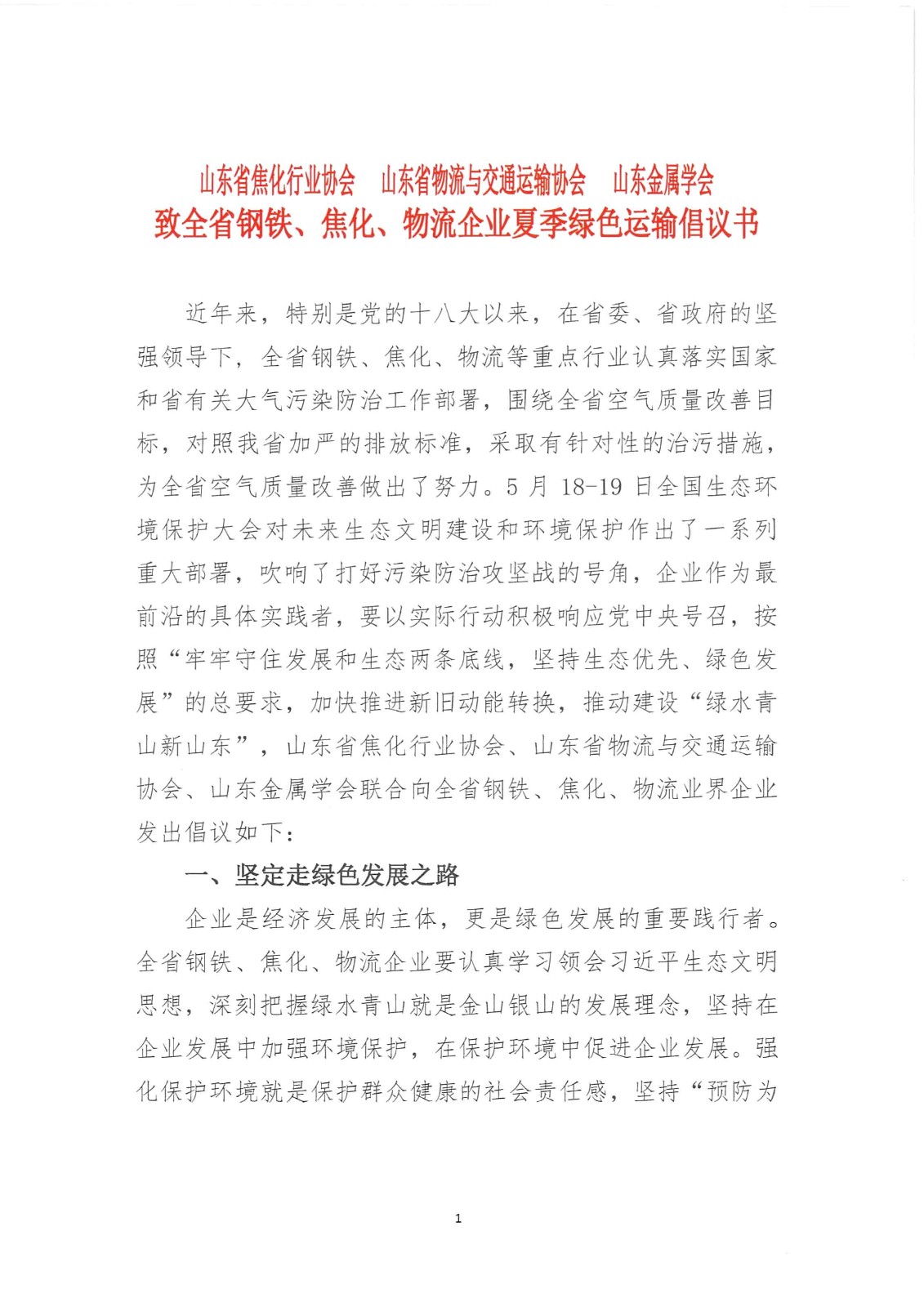 致全省钢铁、焦化、物流企业夏季绿色运输倡议书