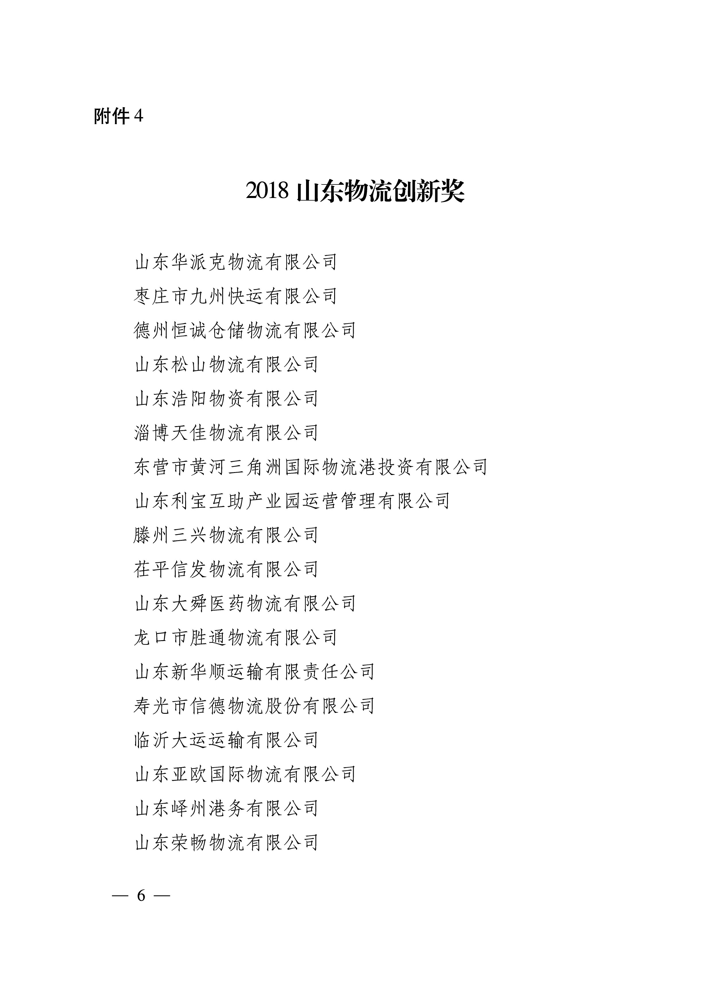关于表彰2018年山东省优秀物流园区及物流企业的通知
