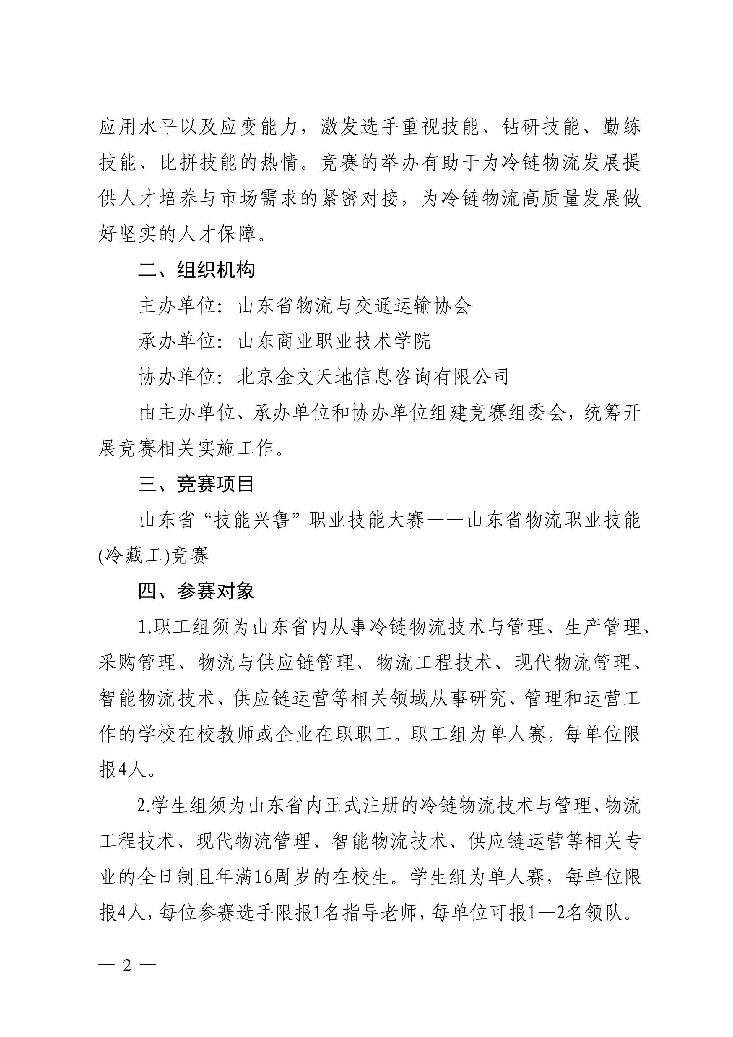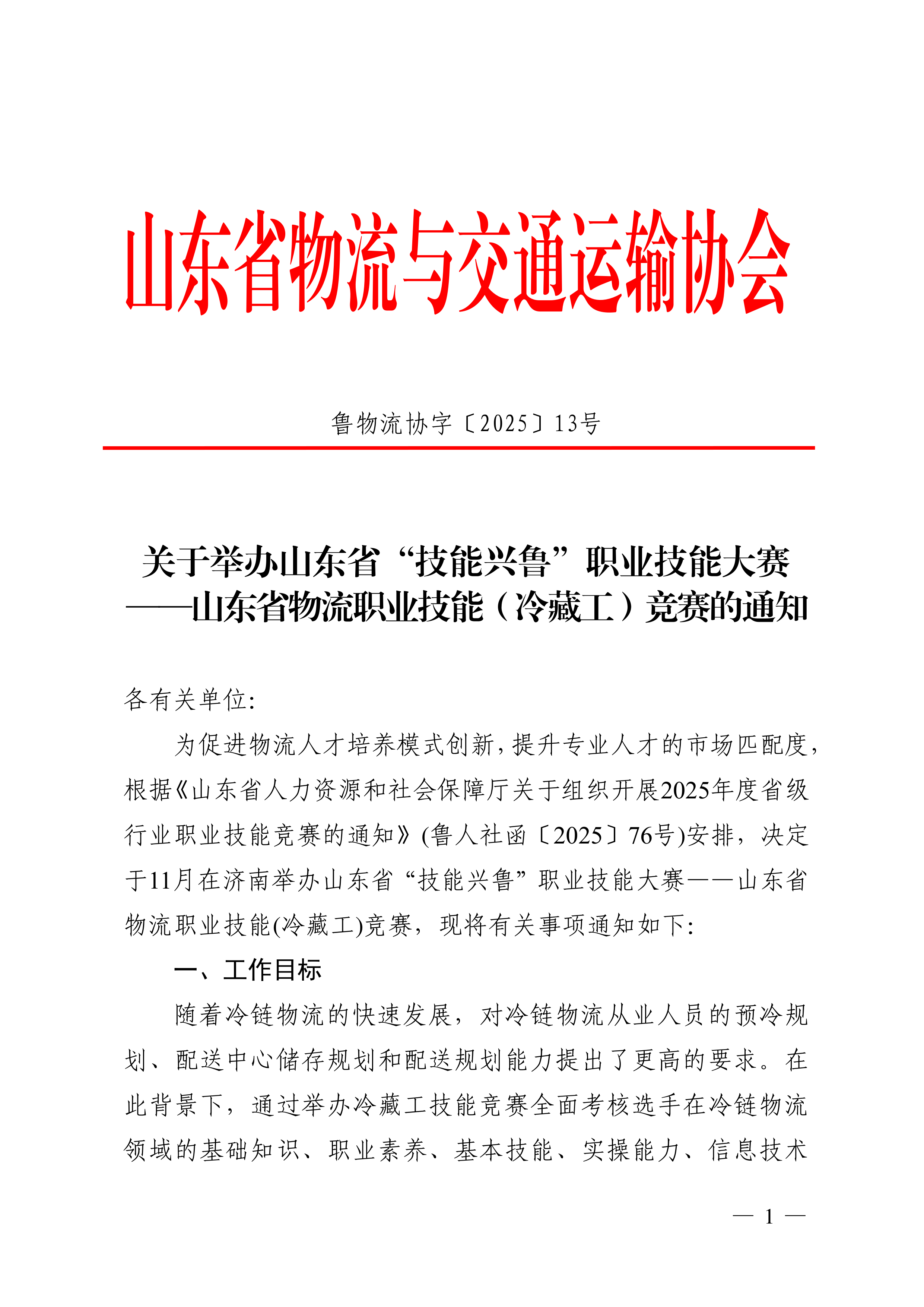 关于举办山东省“技能兴鲁”职业技能大赛——山东省物流职业技能(冷藏工)竞赛的通知